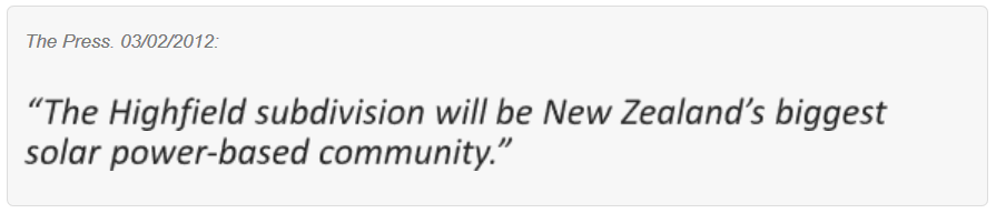 All 2,200 homes in Christchurch’s proposed Highfield subdivision will be fitted with solar-energy systems, making it New Zealand’s biggest solar community.